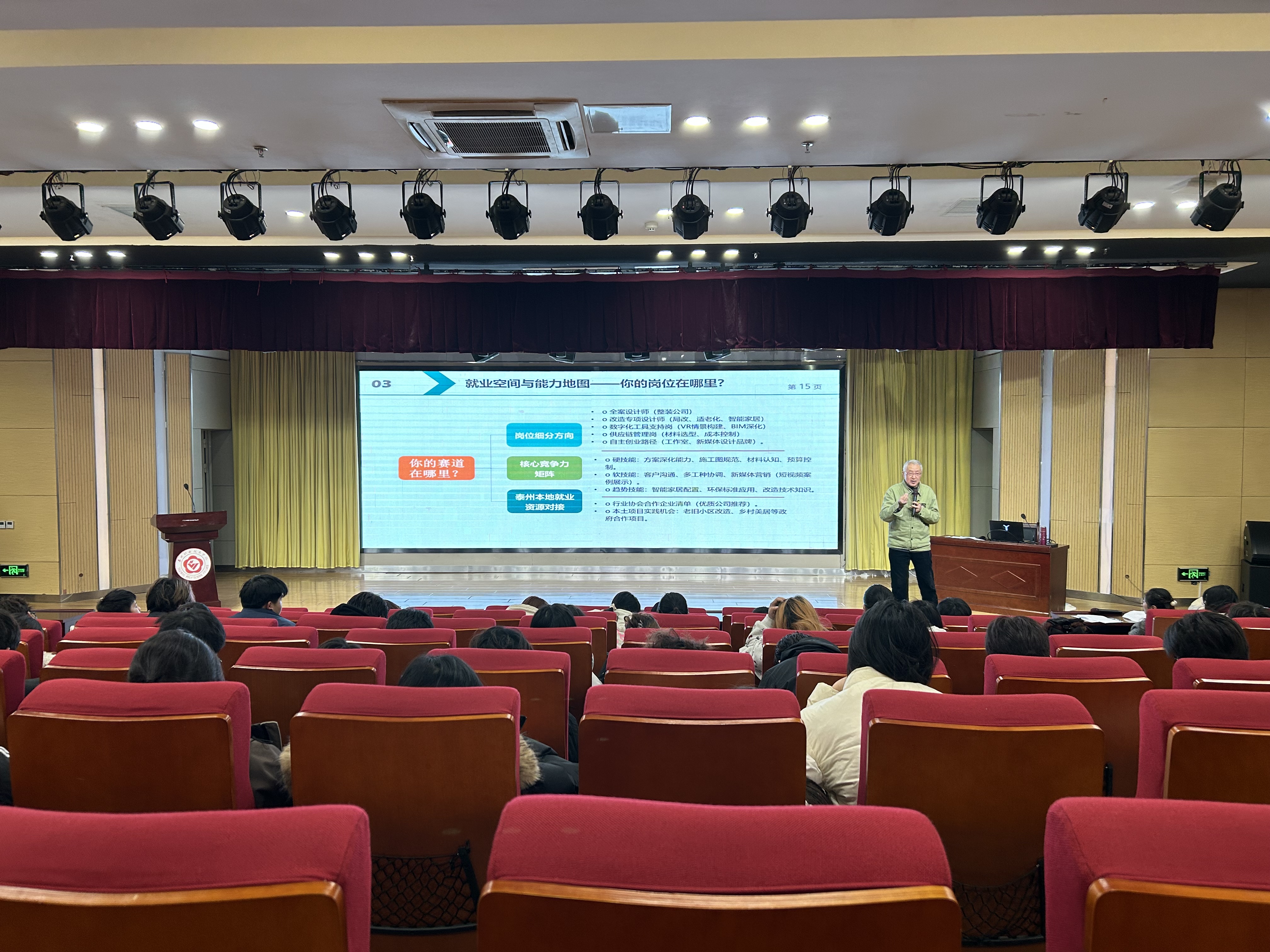 12月11日,受泰职院城乡建设学院邀请,我会党支部书记汤卫国为环境艺术设计专业的学生们带来了一场别开生面的就业辅导讲座,讲座主题为“装饰装修行业的现状、趋势与就业空间——致环境设计专业学子的行业洞察与职业建议”。