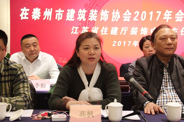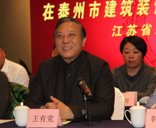 江苏省装饰行业协会会长王有党在讲话中肯定了泰州市建筑装饰协会工作所取得的进步,分析了行业所面临的形势和变化,对会员企业如何转型升级提出了希望和要求。(王有党讲话将另发)。