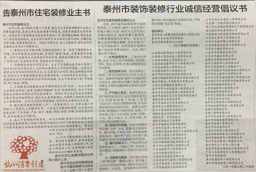 此时,恰好是泰州市住宅装修放心消费创建活动开展一年。
