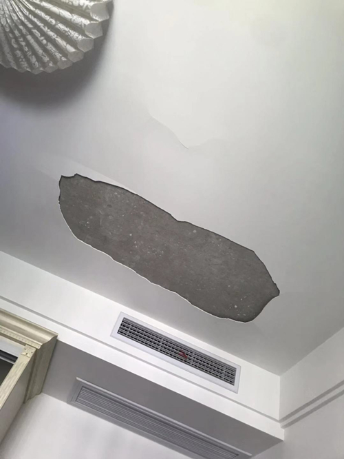 3、少数已经粉刷过的屋顶要进行检查。大部分开发商所交房屋未经粉刷处理,直接把水泥基层交业主。但有个别开发商不知什么原因对屋顶进行了粉刷。一些没有吊顶的工程,装修公司直接在粉刷过的墙体上处理,造成顶部涂层掉落。主要原因是开发商进行粉刷时没有墙基上的油污去除,在有油污的墙体上粉刷,是造成日后涂层掉落的直接原因。
