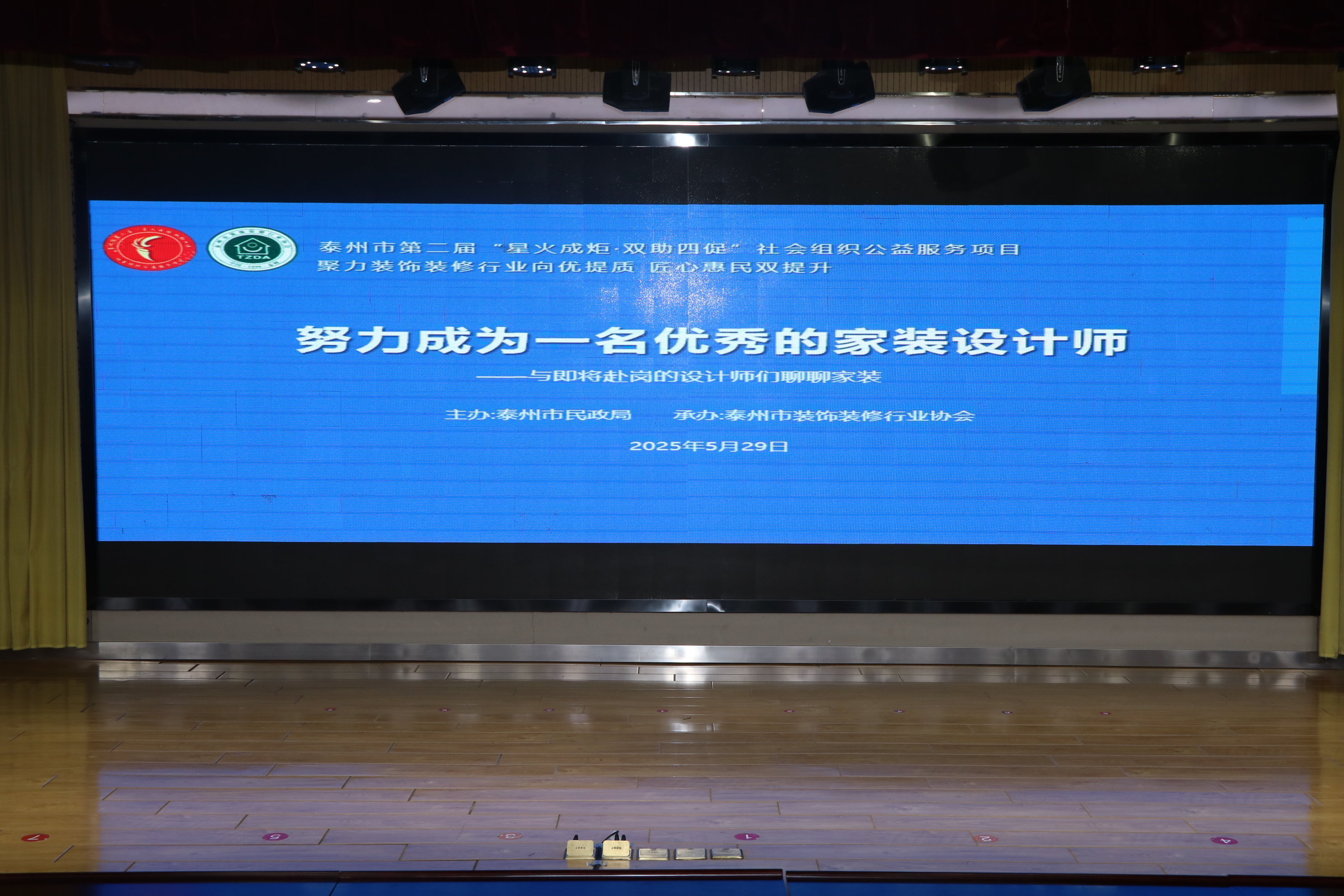 5月29日下午,泰州职业技术学院城乡建设学院“就业指导主题月”系列活动之职业能力提升专家讲座在学院综合报告厅成功举行。本次活动特邀泰州市装饰装修行业协会党支部书记汤卫国担任主讲,以“努力成为一名优秀的家装设计师”为主题,为环境艺术设计专业23级、24级100名学生带来了一场理论与实践深度融合的行业前沿分享。