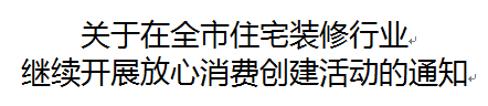 为进一步规范住宅装修市场秩序,加强住宅装修管理,提高住宅装修质量,努力营造安全放心的住宅装修消费环境,经研究,决定在全市住宅装修行业开展放心消费创建活动,培育一批住宅装修放心消费创建优质、示范企业,促进全市住宅装修行业健康、可持续发展。