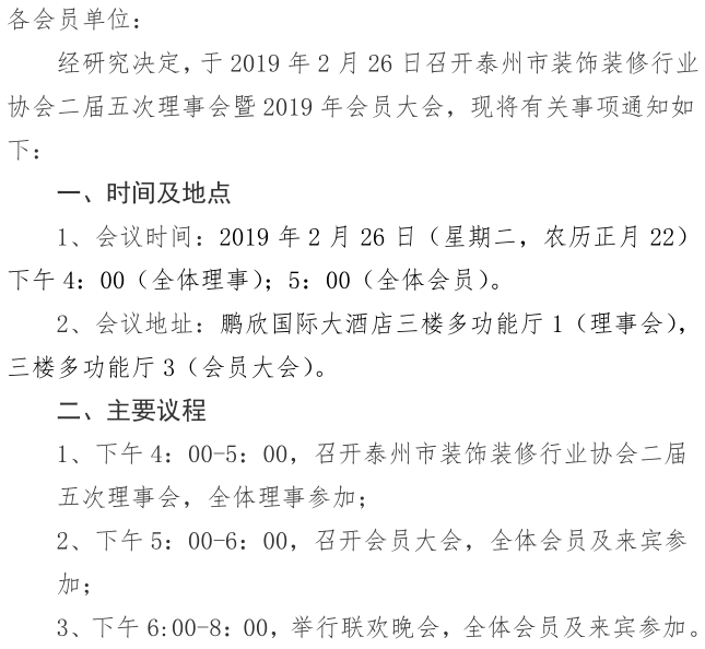 关于召开二届五次理事会暨2019年会员大会的通知