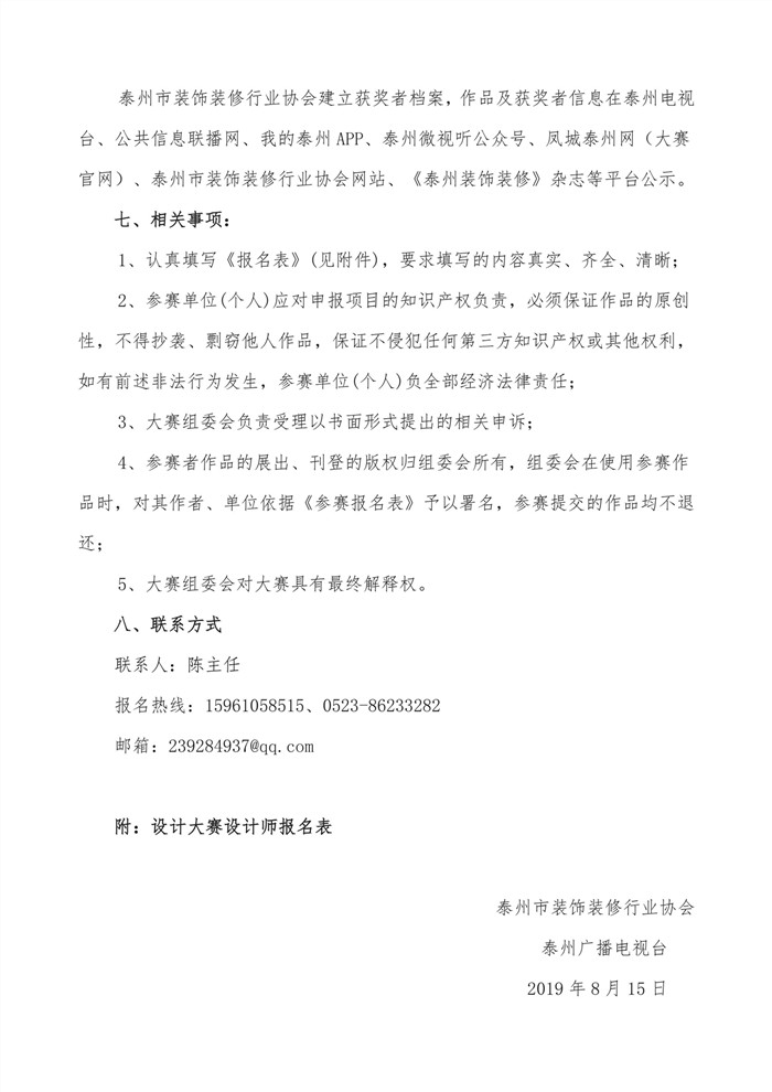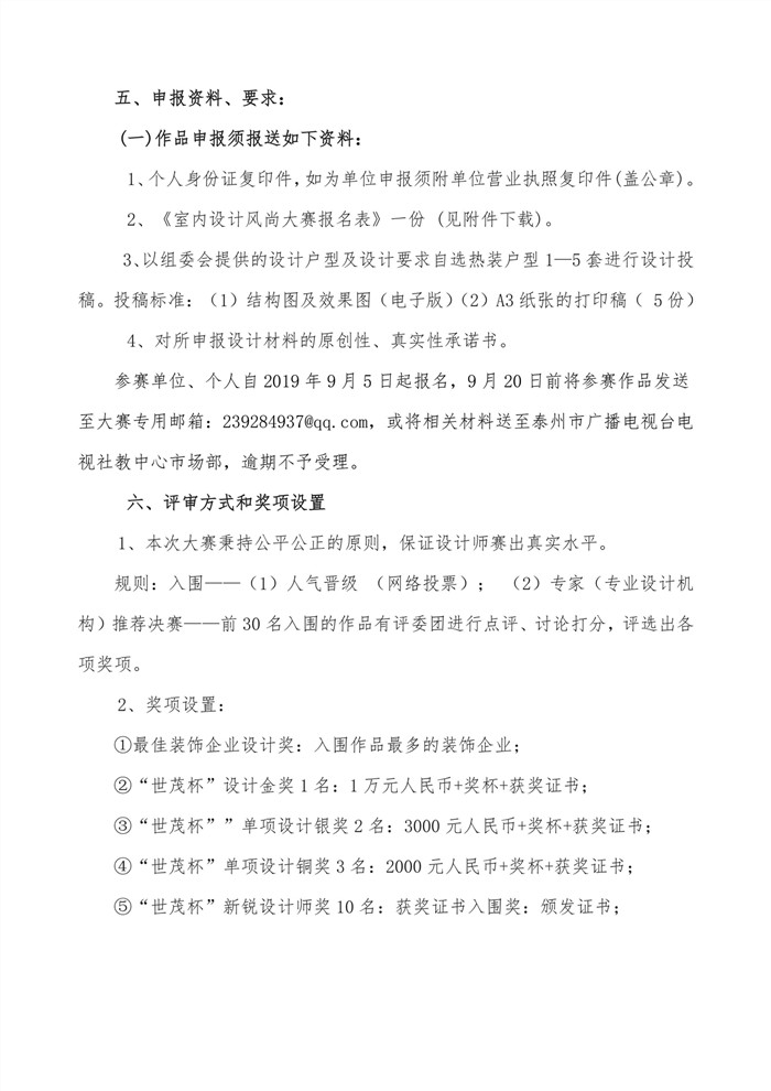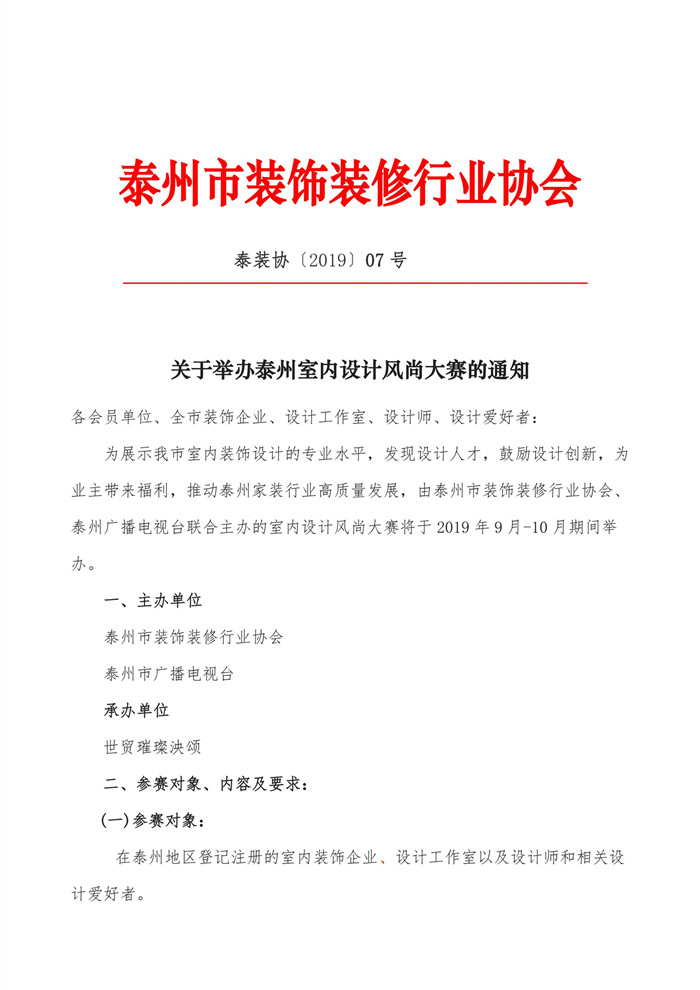 关于报名参加泰州室内设计风尚大赛的通知文件